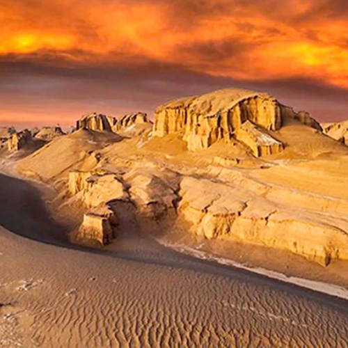 Die Dasht-e Lut hingegen ist eine Wüste der Extreme. Sie wurde als einer der heißesten Orte der Welt gemessen, Temperaturen von über 70 Grad Celsius am Boden sind hier keine Seltenheit. Doch gerade in dieser scheinbar lebensfeindlichen Umgebung erheben sich majestätische Landschaften: gewaltige Sanddünen, bizarr geformte Felsen und die berühmten Kaluts, vom Wind geschaffene Lehmburgen, die wie Ruinen einer versunkenen Stadt wirken.